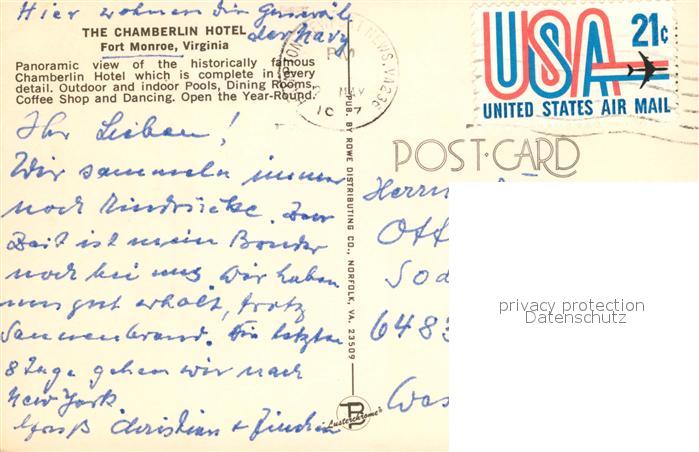 73110872 old postcard Fort Monroe Chamberlin Hotel postalisch gelaufen Erhaltung siehe scans [NatalD47] KatCode: 14140490000000