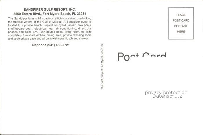 72285846 Fort Myers Beach Sandpiper Gulf Resort Gulf of Mexico postalisch nicht gelaufen Erhaltung siehe scans KatCode: 14140110000000
