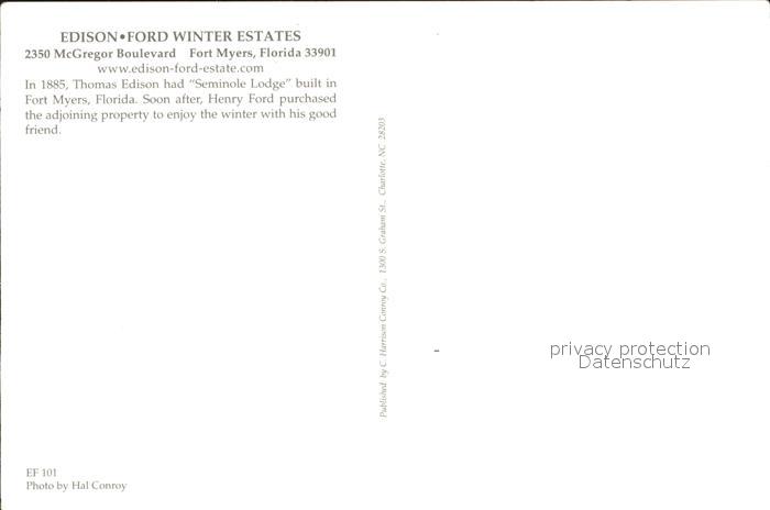 72179130 Fort Myers Edison Ford Winter Estates postalisch nicht gelaufen Erhaltung siehe scans KatCode: 14140110000000