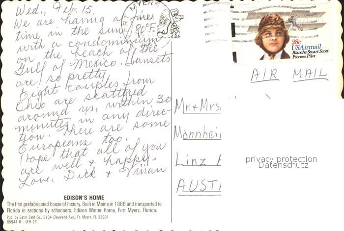 72285849 old postcard Fort Myers Edison Home House of History postalisch gelaufen Erhaltung siehe scans KatCode: 14140110000000