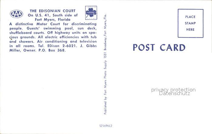 72167258 Fort Myers The Edisonian Court Swimmingpool postalisch nicht gelaufen Erhaltung siehe scans KatCode: 14140110000000