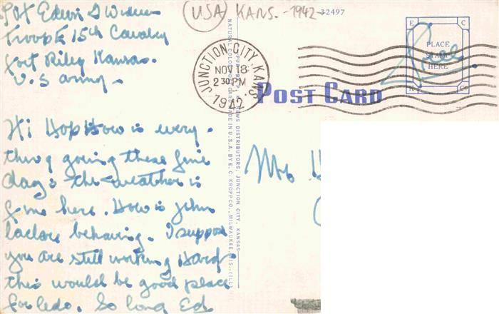 73973360 old postcard Fort Riley Kansas USA Service Club for Selectees Republican Flats postalisch gelaufen Erhaltung siehe scans [FriedD77] KatCode: 14140180000000