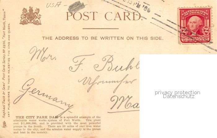 43193246 old postcard Fort Worth City Park Dam postalisch gelaufen Erhaltung siehe scans [FriedD77] KatCode: 14140460000000