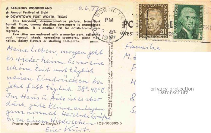 74117890 old postcard Fort Worth Texas USA Burk Burnett Plaza Annual Festival of Light postalisch gelaufen Erhaltung siehe scans [WerneD78] KatCode: 14140460000000