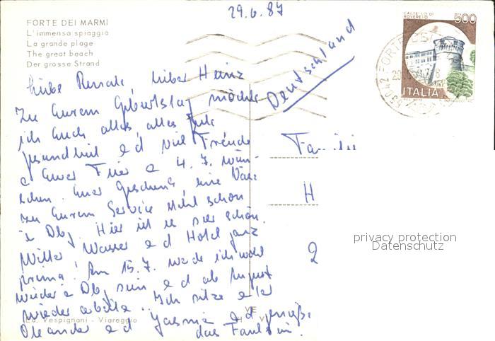 old postcard Forte dei Marmi Der grosse Strand postalisch gelaufen Erhaltung siehe scans