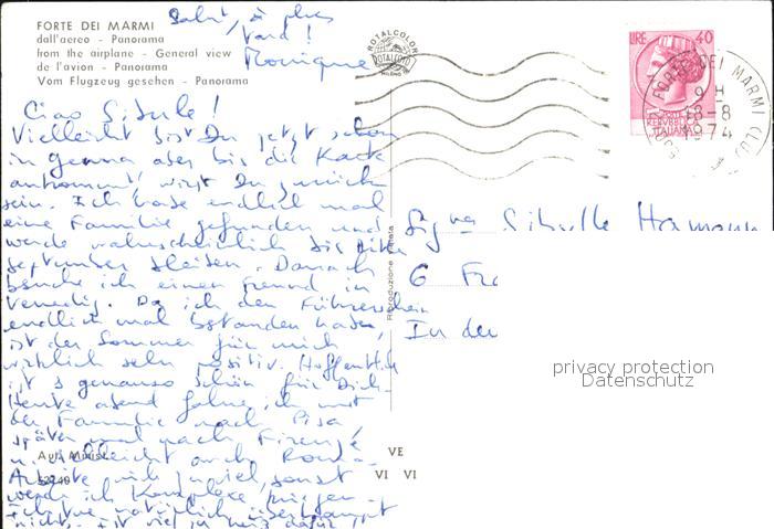 old postcard Forte dei Marmi Fliegeraufnahme postalisch gelaufen Erhaltung siehe scans