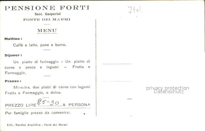 Forte dei Marmi Pensione Forti Succre Gasperini postalisch nicht gelaufen Erhaltung siehe scans