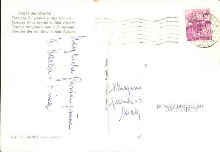 old postcard Forte dei Marmi Terraza del pontile e Alpi Apuane postalisch gelaufen Erhaltung siehe scans