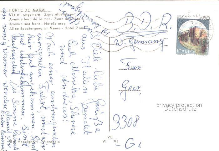 old postcard Forte dei Marmi Uferpromenade Meer postalisch gelaufen Erhaltung siehe scans
