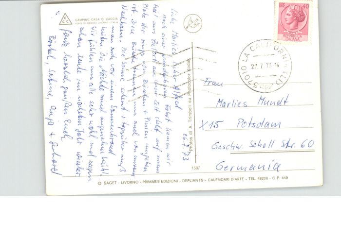 old postcard Forte di Bibbona Livorno Camping Casa di Caccia postalisch gelaufen