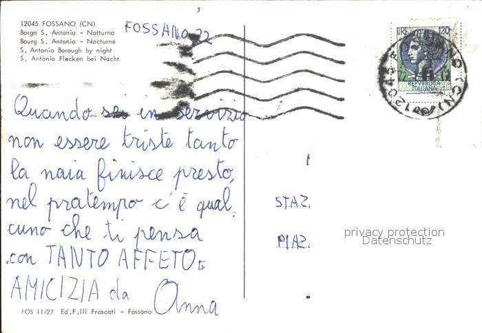old postcard Fossano Borgo S. Antonio Notturne postalisch gelaufen Erhaltung siehe scans