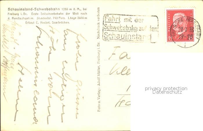 71963905 alte Postkarte Foto Mueller Adolf Schauinsland-Seilbahn postalisch gelaufen Erhaltung siehe scans KatCode: 11110008311000