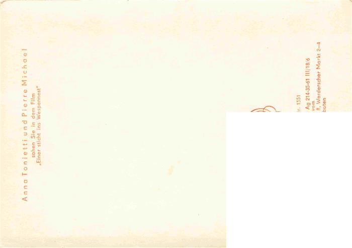 74026054 Foto Progress Starfoto Nr. 1551 Anna Tonietti Pierre Michael Film Berlin postalisch nicht gelaufen Erhaltung siehe scans [SanaeD93] KatCode: 22560000000900