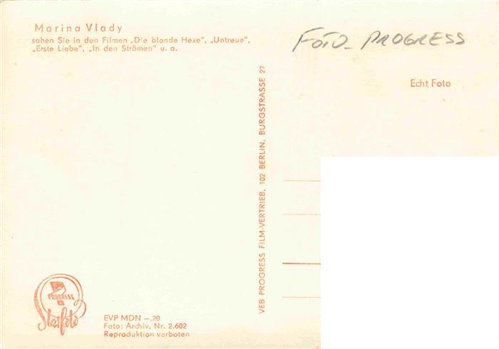 74026051 Foto Progress Starfoto Nr. 2602 Marina Valdy Film Berlin postalisch nicht gelaufen Erhaltung siehe scans [SanaeD93] KatCode: 22560000000900