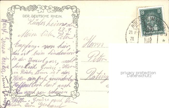 72193204 alte Postkarte Foto Zeitz F.G. Nr. 1096 Ruedesheim Drosselgasse Drosselhof postalisch gelaufen Erhaltung siehe scans KatCode: 11110009172116