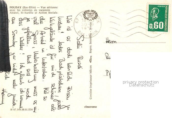 13247408 carte postale Fouday Fliegeraufnahme postalisch gelaufen Erhaltung siehe scans [WerneD78] KatCode: 11170067367144