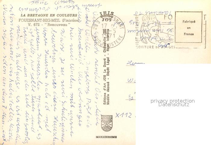 13606737 carte postale Fouesnant Fliegeraufnahme BEG MEIL postalisch gelaufen Erhaltung siehe scans [LiesaD40] KatCode: 11170029429058