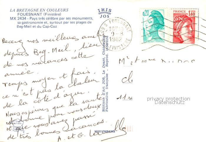 13784500 Fouesnant Pays tres celebre par ses monuments sa gastronomie et surtout par ses plages de Beg Meil et du Cap Coz postalisch gelaufen Erhaltung siehe scans [FriedD77] carte postale Frie Katcode 11170029429058