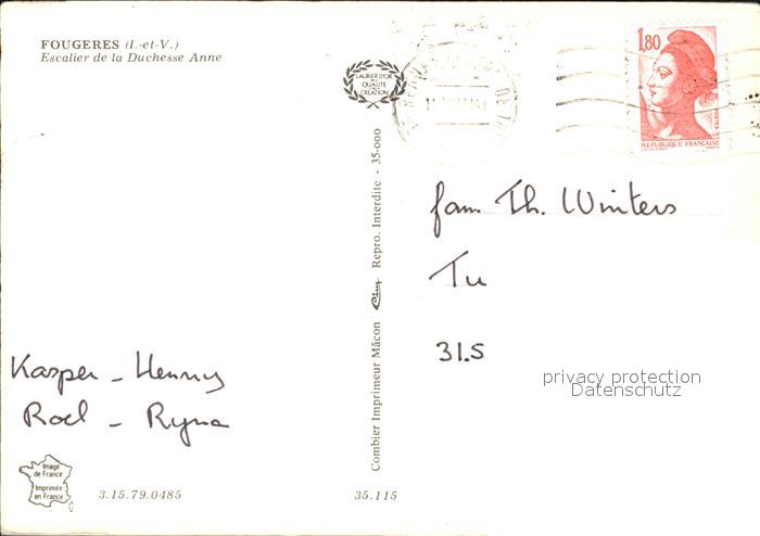 12454333 carte postale Fougeres Escalier de la Duchesse Anne postalisch gelaufen Erhaltung siehe scans KatCode: 11170035135115