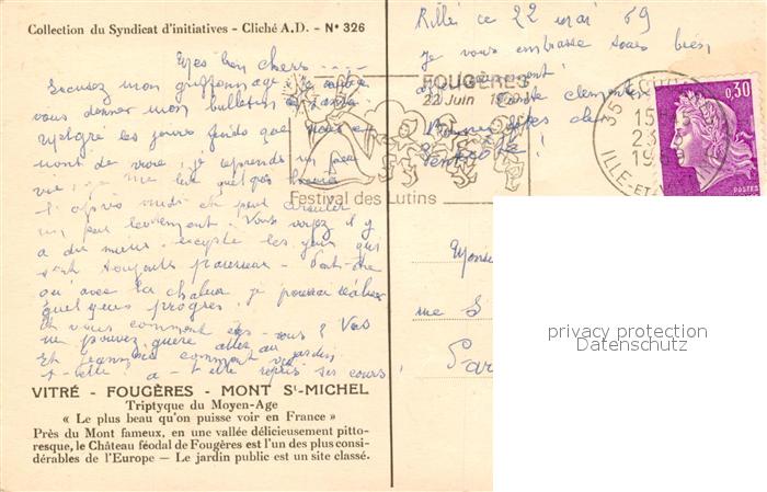 13539788 carte postale Fougeres Intérieur de la Chapelle de Rillé postalisch gelaufen Erhaltung siehe scans [FriedD77] KatCode: 11170035135115
