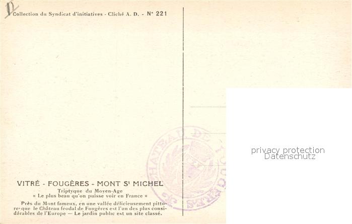 13540654 Fougeres Jardin public vue sur la ville et Chateau Collection du Syndicat d initiatives Cliché A.D. No. 221 postalisch nicht gelaufen Erhaltung siehe scans [FriedD77] KatCode: 11170035135115