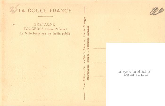 13544320 Fougeres La Ville basse vue du Jardin public postalisch nicht gelaufen Erhaltung siehe scans [DarjaD84] KatCode: 11170035135115