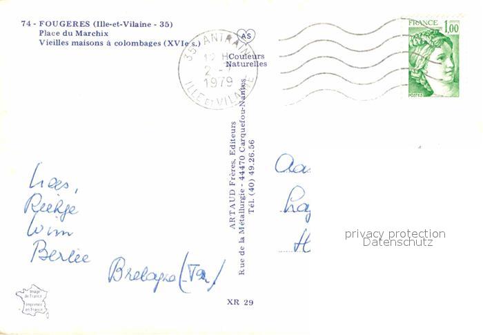 12662573 carte postale Fougeres Place du Marchix postalisch gelaufen Erhaltung siehe scans [NatalD47] KatCode: 11170035135115