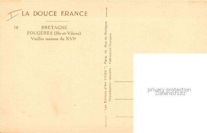 13540663 Fougeres Vieilles maisons du XVIe siècle postalisch nicht gelaufen Erhaltung siehe scans [FriedD77] KatCode: 11170035135115