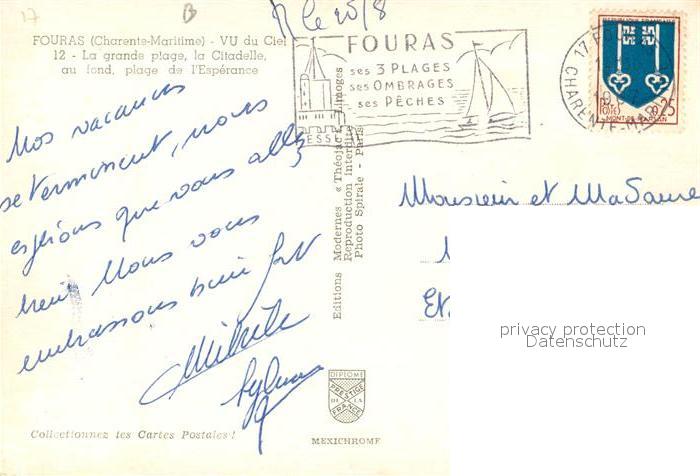13093846 carte postale Fouras Charente-Maritime Fliegeraufnahme postalisch gelaufen Erhaltung siehe scans [KathaD81] KatCode: 11170017217168
