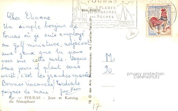 13494481 carte postale Fouras Charente-Maritime Jeux et Karting du Sémaphore postalisch gelaufen Erhaltung siehe scans [FriedD77] KatCode: 11170017217168