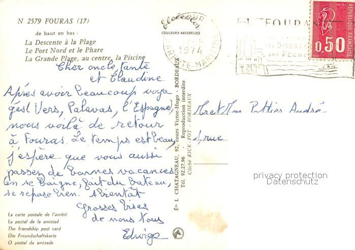 13663319 Fouras Charente-Maritime La Descente a la Plage Le Port Nord et le Phare La Grande Plage au centre la Piscine postalisch gelaufen Erhaltung siehe scans [WerneD78] carte postale Wern Katcode 11170017217168