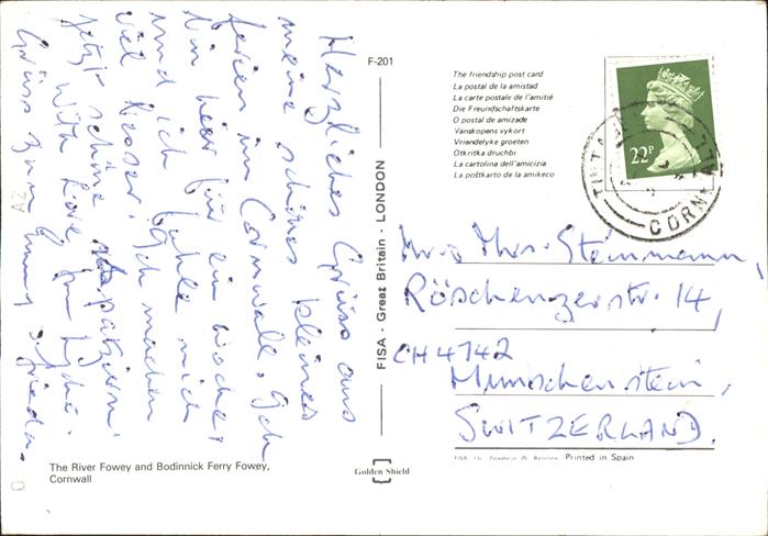 old postcard Fowey River Fowey Bodinnick Ferry Wappen postalisch gelaufen Erhaltung siehe scans