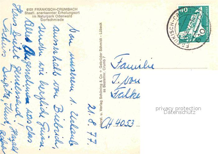 72654813 alte Postkarte Fraenkisch-Crumbach Dorfschmiede postalisch gelaufen Erhaltung siehe scans [AndreD76] KatCode: 11110006437007