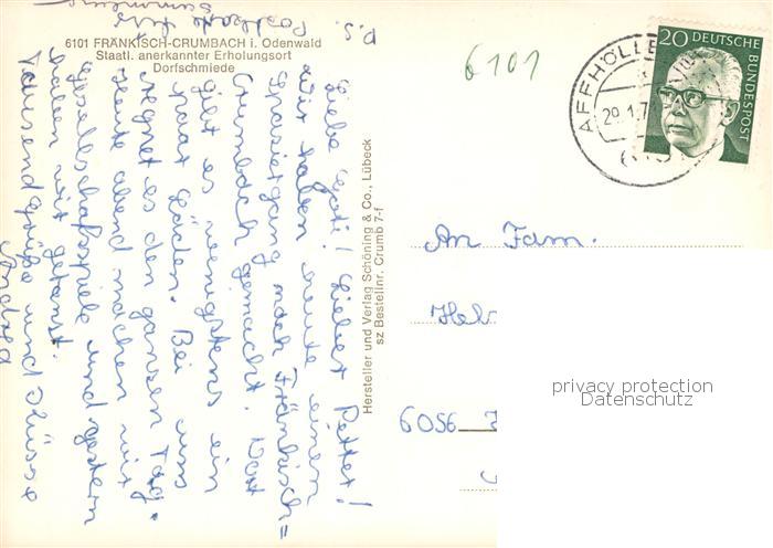 73869537 alte Postkarte Fraenkisch-Crumbach Dorfschmiede postalisch gelaufen Erhaltung siehe scans [WerneD78] KatCode: 11110006437007