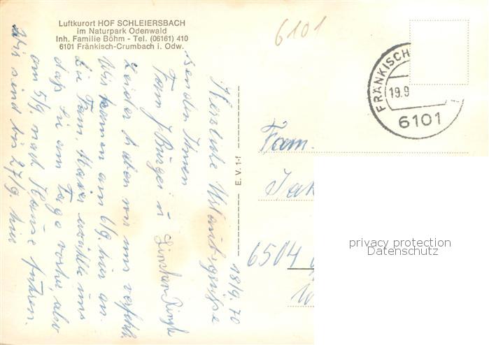 73776315 alte Postkarte Fraenkisch-Crumbach Hof Schleiersbach Aussenansicht postalisch gelaufen Erhaltung siehe scans [LiesaD40] KatCode: 11110006437007