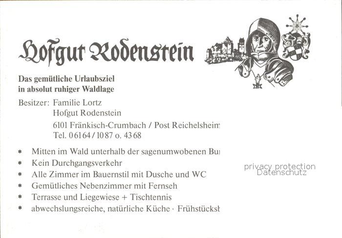 72513852 Fraenkisch-Crumbach Hofgut Rodenstein postalisch nicht gelaufen Werbekarte (keine Postkarte) Erhaltung siehe scans KatCode: 11110006437007