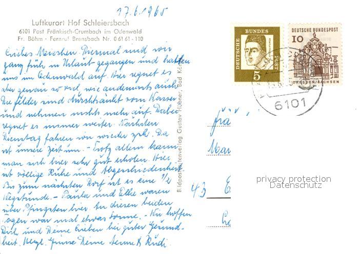 73542818 alte Postkarte Fraenkisch-Crumbach Panorama Luftkurort Schloss Hof Schleiersbach postalisch gelaufen Erhaltung siehe scans [FriedD77] KatCode: 11110006437007