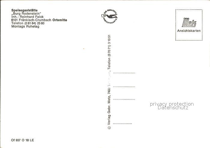 72422097 Fraenkisch-Crumbach Speisegaststaette Burg Rodenstein postalisch nicht gelaufen Erhaltung siehe scans KatCode: 11110006437007