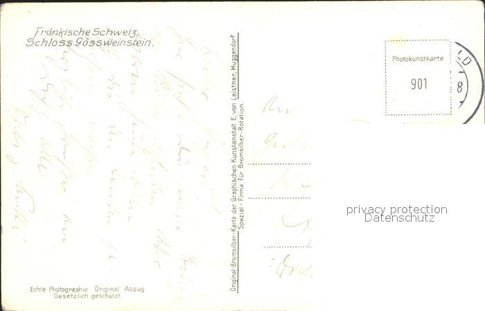 72249346 alte Postkarte Fraenkische Schweiz Schloss Goessweinstein postalisch gelaufen Erhaltung siehe scans KatCode: 11110009472179