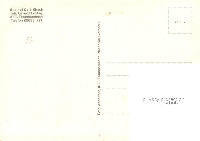 73762736 Frammersbach Gasthof Cafe Kirsch postalisch nicht gelaufen Erhaltung siehe scans [FriedD77] KatCode: 11110009677129