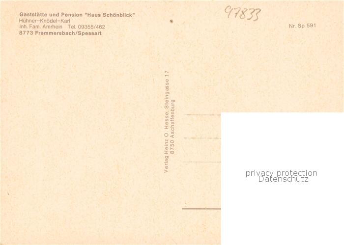 73867161 Frammersbach Gaststaette Pension Haus Schoenblick Terrasse postalisch nicht gelaufen Erhaltung siehe scans [FriedD77] KatCode: 11110009677129