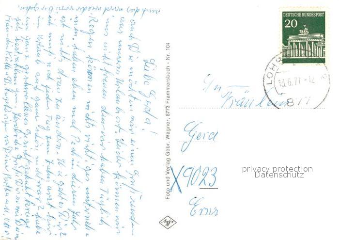 73169389 alte Postkarte Frammersbach Gesamtansicht Landschaftspanorama postalisch gelaufen Erhaltung siehe scans [FriedD77] KatCode: 11110009677129
