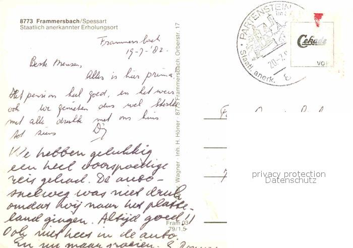 72764348 alte Postkarte Frammersbach Gesamtansicht postalisch gelaufen Erhaltung siehe scans [AndreD76] KatCode: 11110009677129