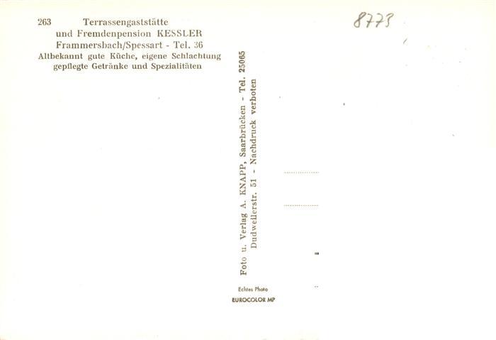 73915054 Frammersbach Panorama Terrassengaststaette und Fremdenpension Kessler postalisch nicht gelaufen Erhaltung siehe scans [FriedD77] KatCode: 11110009677129