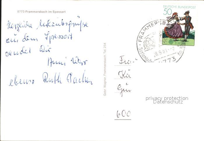 72445836 alte Postkarte Frammersbach Teilansicht postalisch gelaufen Erhaltung siehe scans KatCode: 11110009677129