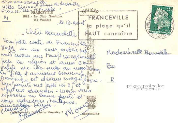 13582463 Franceville-Plage Le Club Nautique les Volliers postalisch gelaufen Erhaltung siehe scans [WerneD78] carte postale Wern Katcode 11170014214409