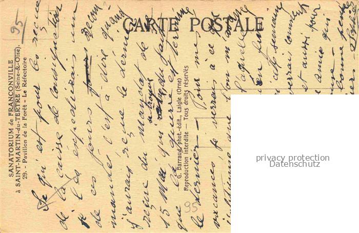 14112550 Franconville PONTOISE 95 Val-d Oise Sanatorium Pavillon de la Forêt Le Réfectoire postalisch nicht gelaufen Erhaltung siehe scans [FriedD77] Frie Katcode 11170095395252