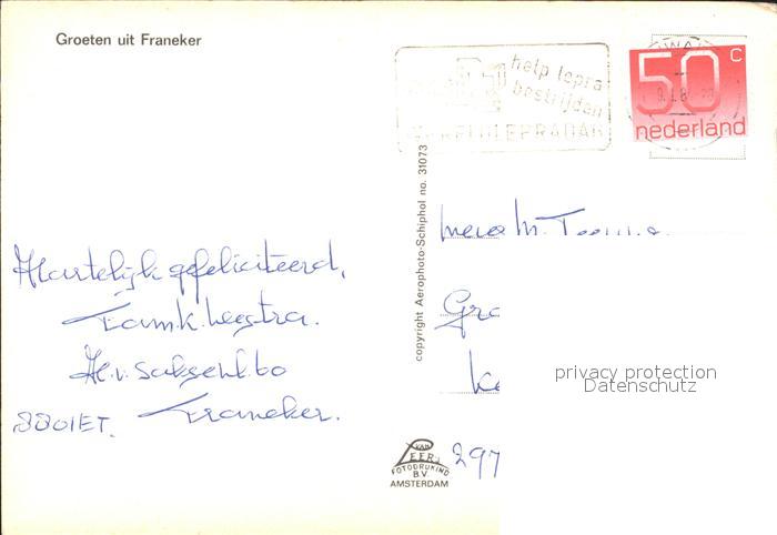 old postcard Franeker Fliegeraufnahme postalisch gelaufen Erhaltung siehe scans