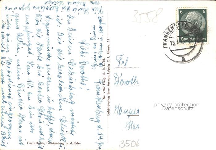 32185800 alte Postkarte Frankenberg Eder Fliegeraufnahme postalisch gelaufen Erhaltung siehe scans KatCode: 11110006635011
