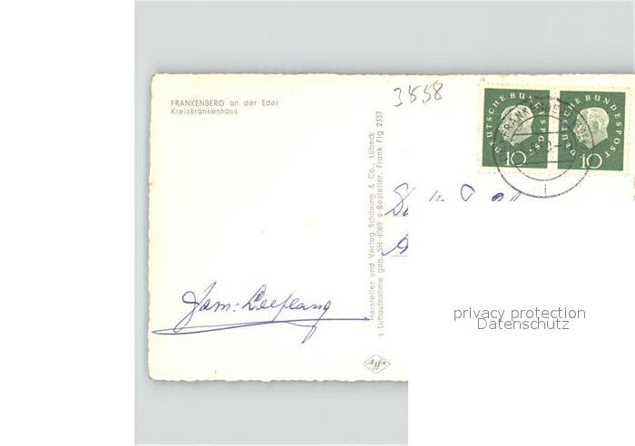 41619889 alte Postkarte Frankenberg Eder Fliegeraufnahme Kreiskrankenhaus postalisch gelaufen Erhaltung siehe scans KatCode: 11110006635011